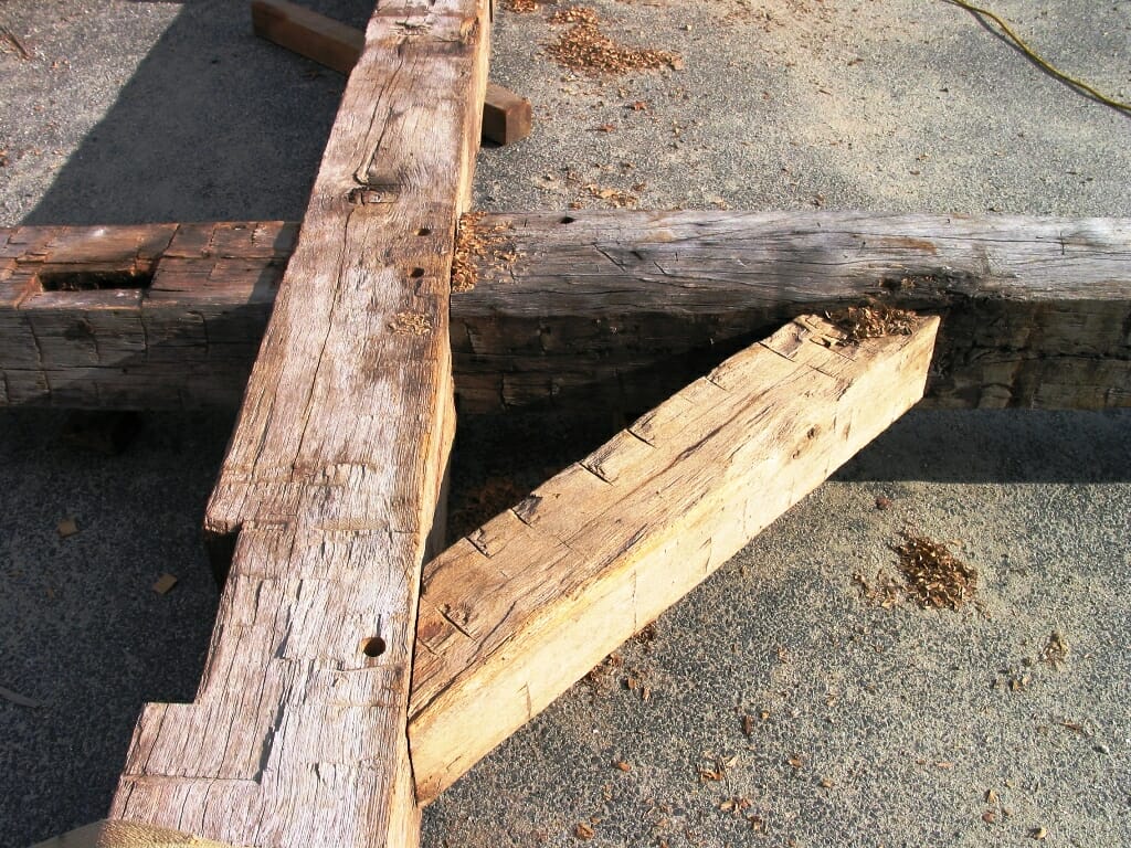L) Hewn timber : Timber converted to size by an axe and the end.