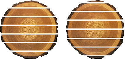 - Tangential Sawing : The board & planks are sawn out of wood tangentially to the annual rings. Economical due to less wastage &involves less Labor do not suit for heavy works as for flooring.