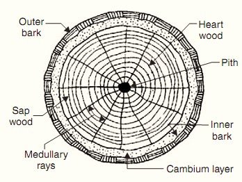 2) Heart Wood : Inner Part of Log of a tree surrounding the pith is called Heart.