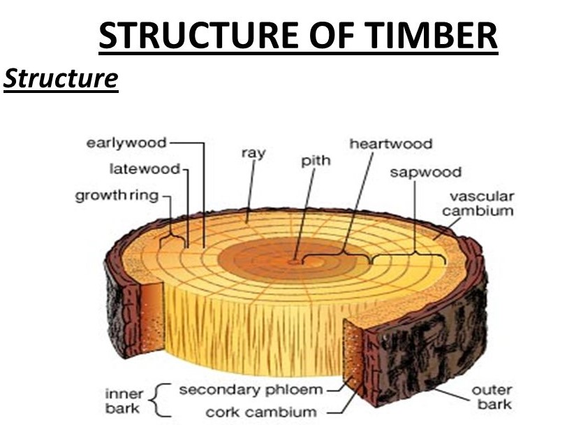 1)Pith : Inner most part having soft tissues near about the center of log of a timber.